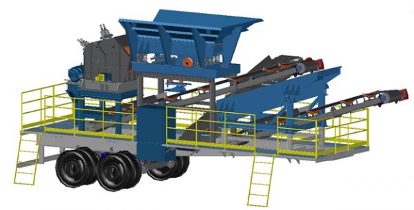 A mini usina processa 20 a 25 toneladas por hora, com capacidade de alimentação de materiais com dimensões máximas de: